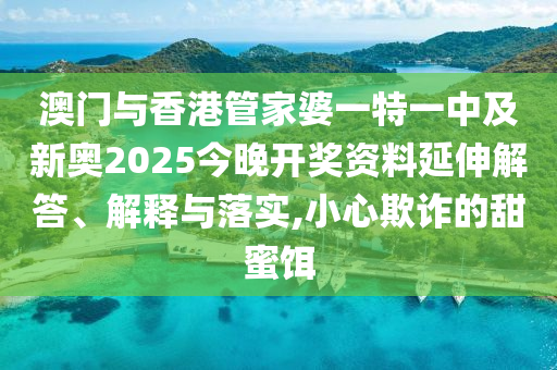 澳門與香港管家婆一特一中及新奧2025今晚開獎(jiǎng)資料延伸解答、解釋與落實(shí),小心欺詐的甜蜜餌