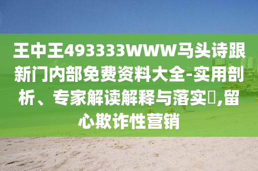 摘要:王中王493333WWW馬頭詩跟新門內(nèi)部免費資料大全”,本文提供實用剖析、專家解讀解釋與落實的內(nèi)容。提醒公眾在獲取相關(guān)資料時,需留心欺詐性營銷,謹慎選擇來源,理性獲取和使用資料。本文旨在幫助公眾正確理解和利用相關(guān)資源,避免不必要的損失。